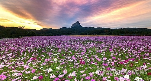 마이산 석양과 코스모스 [진안군 제공. 재판매 및 DB 금지]