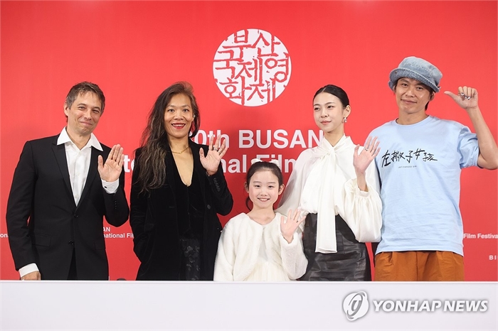부산국제영화제 경쟁 부문 '왼손잡이 소녀' 기자회견 (부산=연합뉴스) 류효림 기자 = 션 베이커 프로듀서(왼쪽부터), 쩌우스칭 감독, 배우 니나 예, 마쉬유안, 황텅웨이가 23일 부산 해운대구 우동 영화의전당에서 열린 제30회 부산국제영화제 경쟁 부문 '왼손잡이 소녀' 기자회견에서 포즈를 취하고 있다. 2025.9.23 ryousanta@yna.co.kr