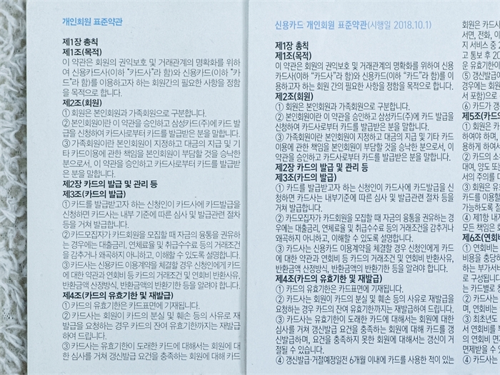 기존 삼성카드 약관(왼쪽)과 디올폰트를 적용한 새 약관 [이종근 디올연구소 대표 제공. 재판매 및 DB 금지]