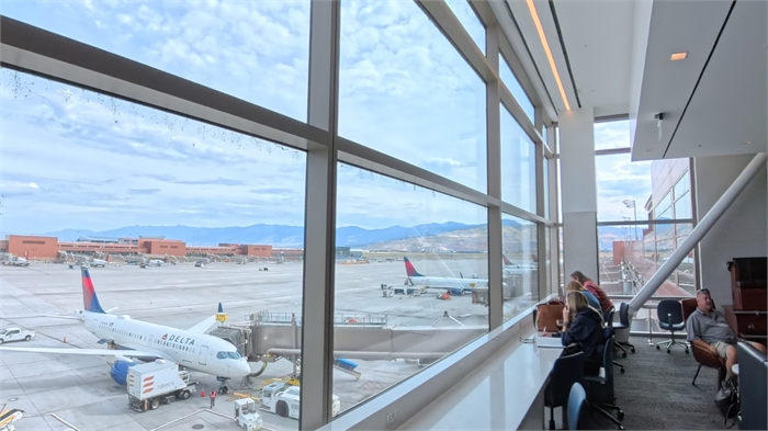 솔트레이크시티 국제공항 델타 스카이 클럽은 콘코스 A에 위치한 대형 라운지로, 약 750평 규모의 초대형 라운지다. 산악지형을 내려다보는 개방감과 여유로운 좌석 배치, 전용 작업 공간이 인상적이었다. 규모가 워낙 크다 보니 칵테일 바도 두 군데서 운영 중이었다. 시간이 모자라 샤워실은 이용하지 못했지만, 꽤 깨끗하게 운영되고 있는 것을 확인했다. 운영시간은 매일 오전 4시 45분부터 오후 11시 15분까지로, 공항 첫 항공편과 야간편 승객까지 이용할 수 있다.