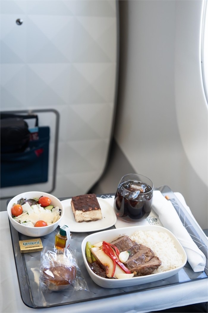 일반 이코노미석 기내식과 차이가 있는 프리미엄 셀렉트석 기내식 [사진/성연재 기자]