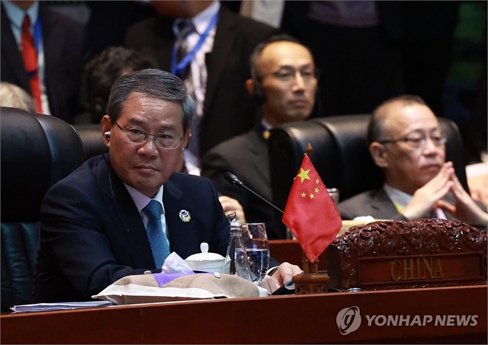 리창 중국 총리 (비엔티안=연합뉴스) 홍해인 기자 = 리창 중국 총리가 이달 11일(현지시간) 라오스 비엔티안 국립컨벤션센터(NCC)에서 열린 동아시아 정상회의(EAS)에 참석하고 있다. 2024.10.11