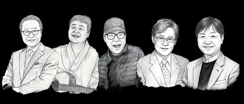 '쎄시봉, 더 라스트 콘서트' 출연진 왼쪽부터 방송인 이상벽, 가수 송창식, 조영남, 윤형주, 김세환 [쇼플러스 제공. 재판매 및 DB 금지]