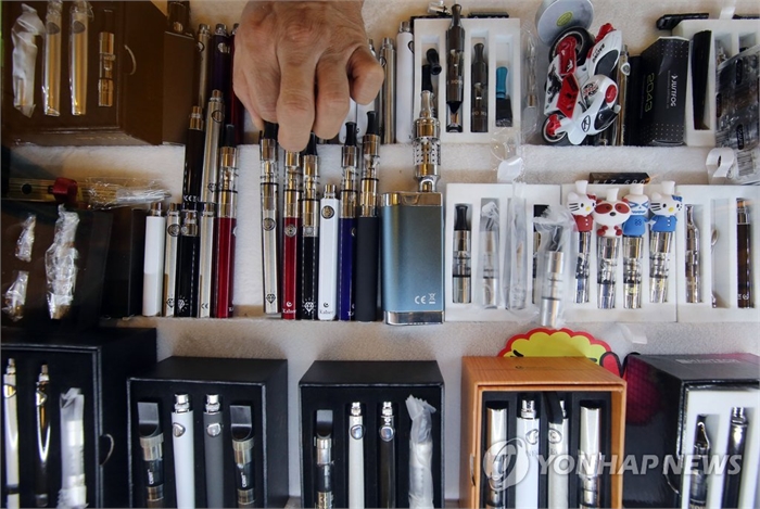 2014년 9월 14일 오후 서울 강남의 한 전자담배 매장에서 매장 직원이 상품을 정리하는 모습[연합뉴스 자료사진]