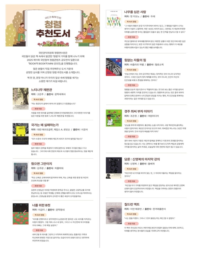 청렴연수원 선정 청렴 추천도서 [국민권익위원회 제공]