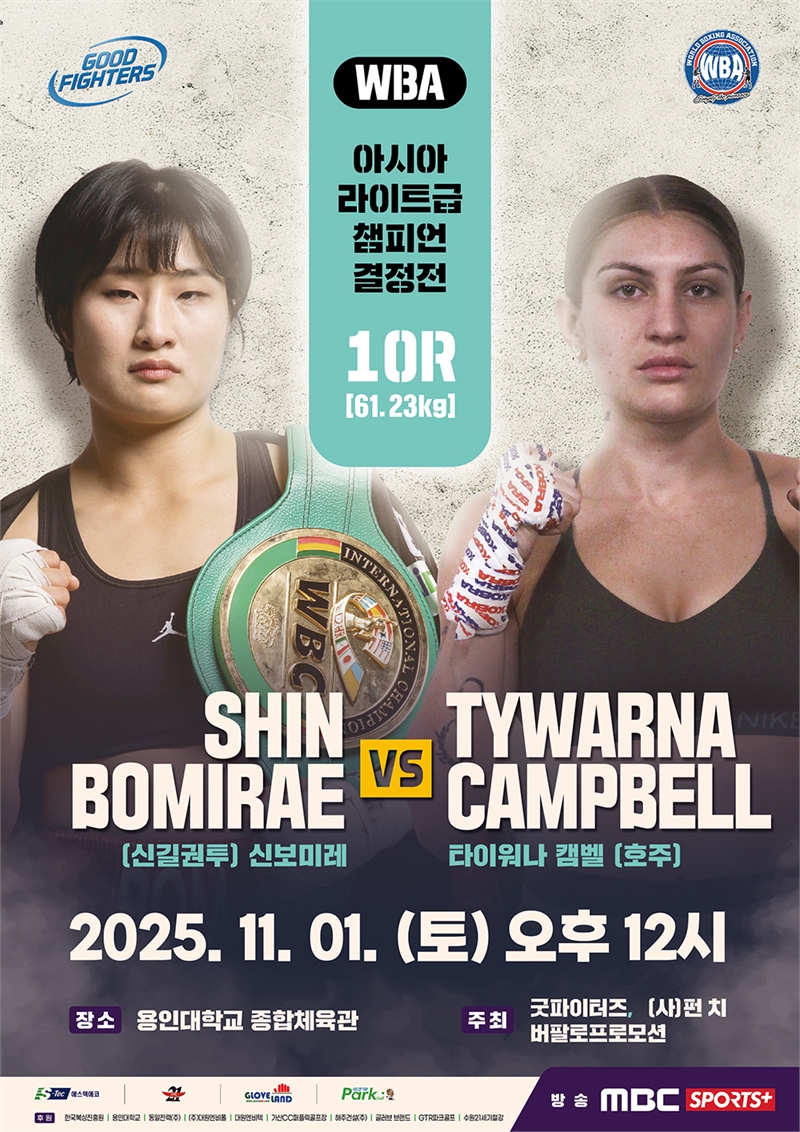 다가오는 11월 1일 정오, 용인대학교 종합체육관 특설링이 뜨겁게 달아오른다. 한국 복싱의 차세대 스타 신보미레가 호주의 강자 타이워나 캠벨을 상대로 WBA 아시아 라이트급 타이틀 매치에 나서는 것이다. 이번 대결은 단순한 타이틀전이 아니다. 아시아 무대의 정점에 오르려는 집념, 그리고 한국 복싱의 미래를 증명하려는 각오가 맞부딪히는 진검승부다.