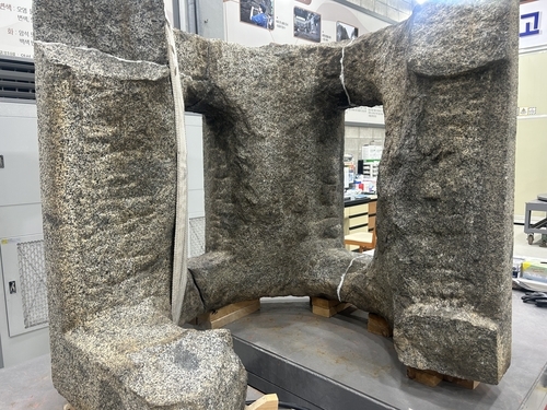 보존 처리 작업 중인 석등 부재 (대전=연합뉴스) 김예나 기자 = 국내에 남아있는 석등 가운데 가장 큰 규모로 알려진 국보 '구례 화엄사 각황전 앞 석등' 부재 모습. 사진은 6월 대전 국립문화유산연구원 문화유산보존과학센터 석조 복원실에서 보존 처리 작업을 위해 보관돼 있는 모습. 2025.11.5