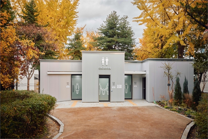 강남 공중화장실의 대변신…"기능성·디자인 다 갖췄다" (서울=연합뉴스) 정준영 기자 = 강남구(구청장 조성명)는 도산공원과 세곡천 물맞이공원 내 공중화장실 두 곳을 기능성과 디자인을 모두 갖춘 '강남형 공공화장실'로 전면 개선했다고 12일 밝혔다. 구는 "'도시 품격을 높이는 공공공간 조성'을 목표로 안전성, 디자인