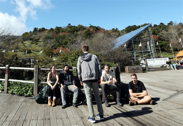 정상 백록담 주변에서 휴식을 취하는 등산객들을 보고 있노라면 여기가 알프스같이 국제적으로 유명한 산이 아닌가 하는 착각이 들 정도였다. 다양한 국적의 외국인들이 한국인들과 어울려 있었다. 일부 외국인은 컵라면을 즐기는 한국인들을 신기한 듯 바라보며 엄지손가락을 치켜세우기로 했다. '친절한 한국인'도 있었다. 한참 늦게 하산한 동료는 다리를 삔 듯 걷는 것이 불편해 보이는 중국계 여성에게 등산스틱을 기꺼이 빌려줬다고 자랑을 늘어놓았다.