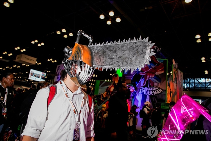 지난 9일 뉴욕 코믹콘에서 '체인소 맨' 코스튬을 입고 있는 팬 [로이터 연합뉴스 자료사진. 재판매 및 DB 금지]
