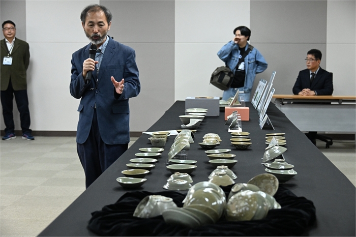 청자 다발에 관해 설명하는 한성욱 민족유산연구원 이사장 [국가유산청 제공. 재판매 및 DB 금지]