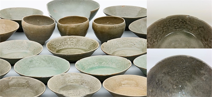 다발로 된 청자는 접시가 65점, 그릇(완) 15점, 잔 7점 등이었다.