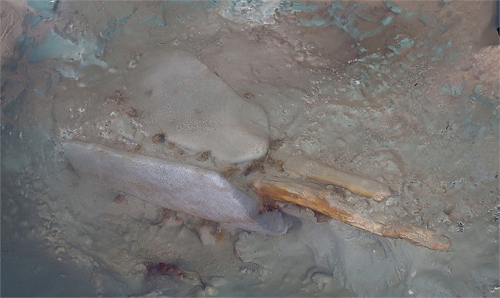조선시대 조운선 '마도 4호선' 뭍으로…쇠못 사용한 흔적 첫 확인 (서울=연합뉴스) 국립해양유산연구소는 우리나라 고선박에서 처음으로 선체 수리에 쇠못을 사용한 흔적이 확인된 마도 4호선의 선체 조각을 태안 보존센터로 옮겨 목재에 남은 염분을 빼는 작업을 진행 중이라고 10일 밝혔다. 사진은 마도 4호선 인양 전 상태. 2025.11.10 [국립해양유산연구소 제공. 재판매 및 DB 금지] photo@yna.co.kr