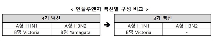 독감 3가 백신과 4가 백신의 구성 비교 [질병관리청 보도자료 갈무리. 재판매 및 DB 금지]