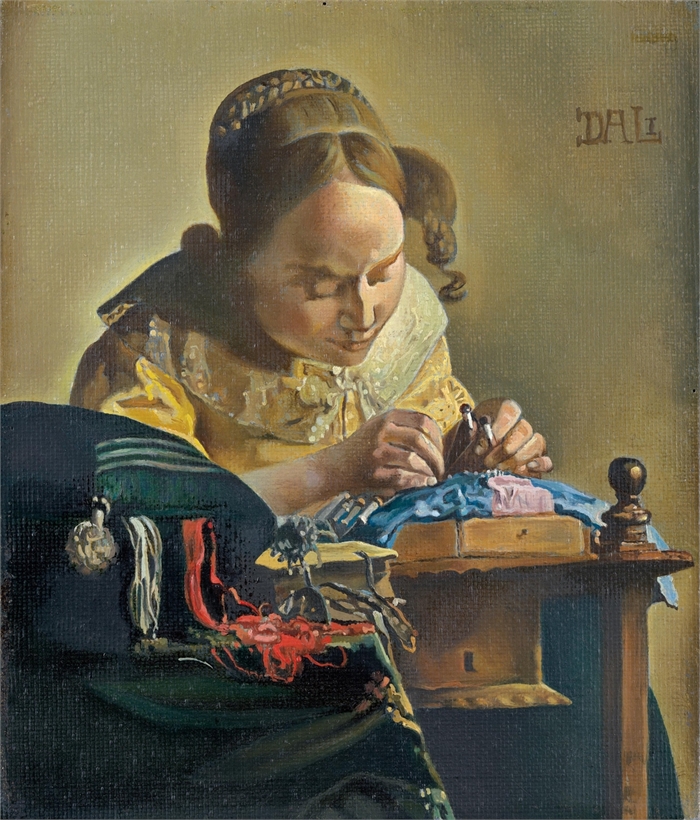 살바도르 달리, '레이스를 뜨는 여인' 살바도르 달리, <레이스를 뜨는 여인(페르메이르 작품을 모사)>, 1955년, 캔버스에 유화, 23.5×19.7㎝, 로버트 리먼 컬렉션, 1975년 (1975.1.232)