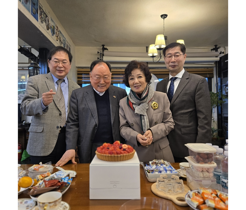 애몽화장품 이정애 회장 생신을 함께 축하하는 필자(좌측부터 본지 조중동e뉴스 김명수 발행인, 금곡학술재단 하연순 이사장, 이정애 회장, 필자)