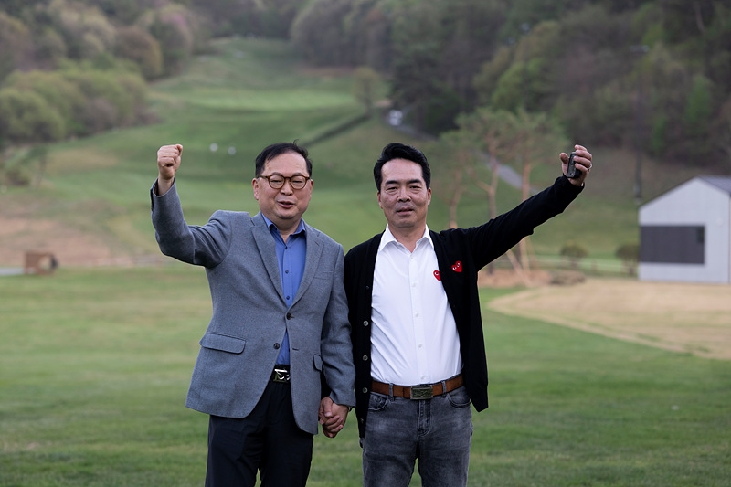 본지 조중동 e뉴스 김명수 발행인과 힘차게 화이팅을 외치는 필자