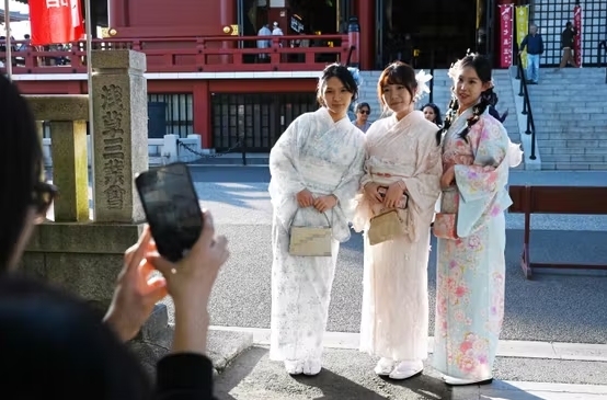 2025년 11월 15일 도쿄 아사쿠사 구에 있는 센소지 사원을 찾은 중국인 관광객들
