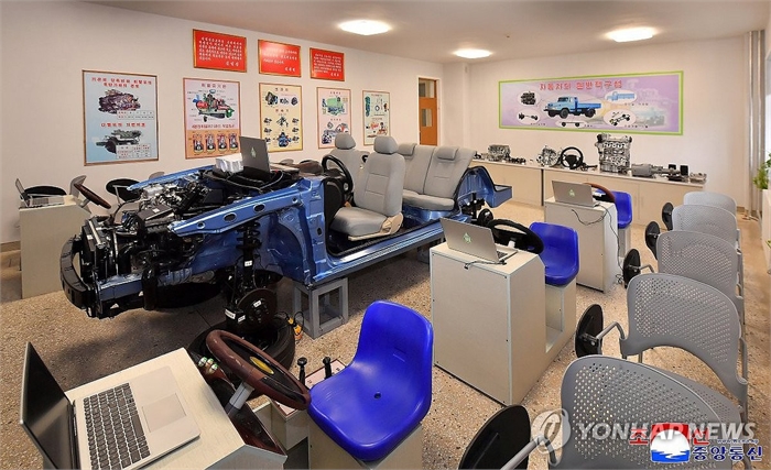 북한, 평양에 통합병설 '전진고급중학교' 준공 (평양 조선중앙통신=연합뉴스) 평양시 낙랑구역에 통합병설학교로 새로 건설된 전진고급중학교가 지난 27일 준공됐다고 조선중앙통신이 28일 보도했다. 사진은 자동차 실습실 모습. 2025.11.28