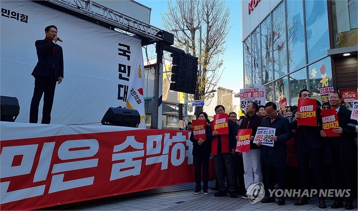 (대전·청주·서울=연합뉴스) 김치연 노선웅 기자 = 국민의힘이 12·3 비상계엄 사태 1년을 앞두고 반(反)정부 여론을 확산하고 지지층 결집을 위해 진행하고 있는 장외 집회에서 이른바 계엄 사과 문제를 놓고 당내 이견이 분출됐다.