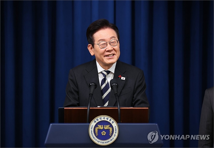이재명 대통령, 대국민 특별성명 (서울=연합뉴스) 김도훈 기자 = 이재명 대통령이 12·3 비상계엄 사태 1주년인 3일 용산 대통령실에서 '빛의 혁명 1주년 대국민 특별성명'을 발표한 뒤 취재진의 질문에 답하고 있다. 2025.12.3 superdoo82@yna.co.kr