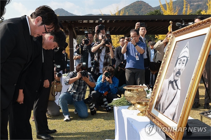 배우 조진웅 2023년 10월 25일 국립대전현충원 독립유공자 제3묘역에서 열린 홍범도 장군 순국 80주기 추모 및 청산리전투 전승 103주년 기념식에서 배우 조진웅(왼쪽)이 묵념하고 있다. 2023.10.25 [공동취재단/연합뉴스 자료사진]
