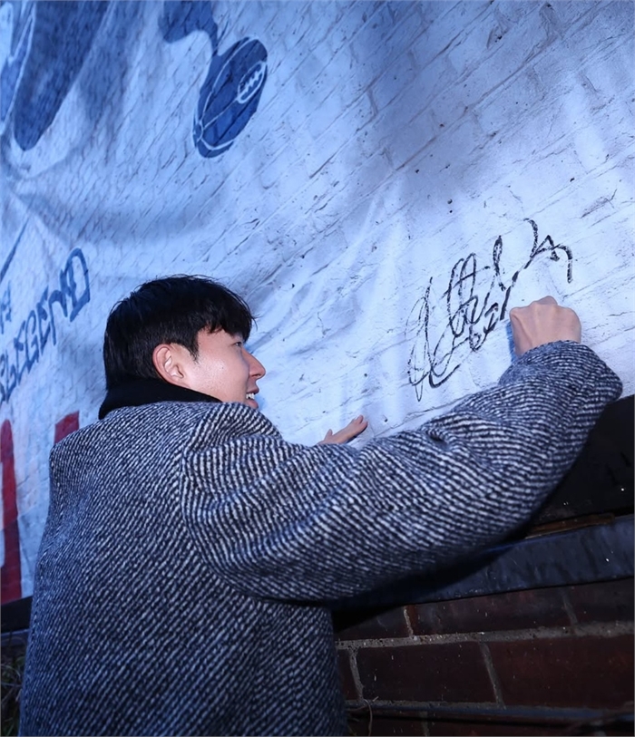 벽화에 서명을 남기는 손흥민 [토트넘 홋스퍼 SNS 캡처. 재판매 및 DB 금지]