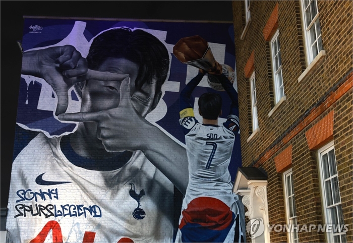 토트넘 하이로드 견물 벽에 마련된 손흥민 벽화 [EPA=연합뉴스]