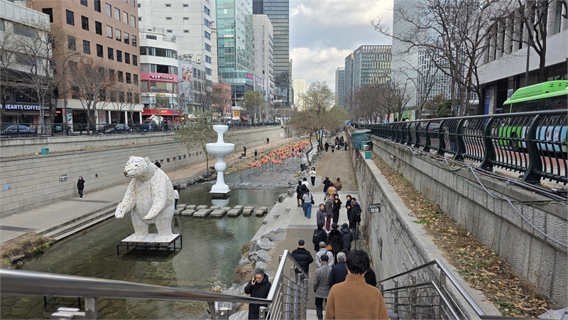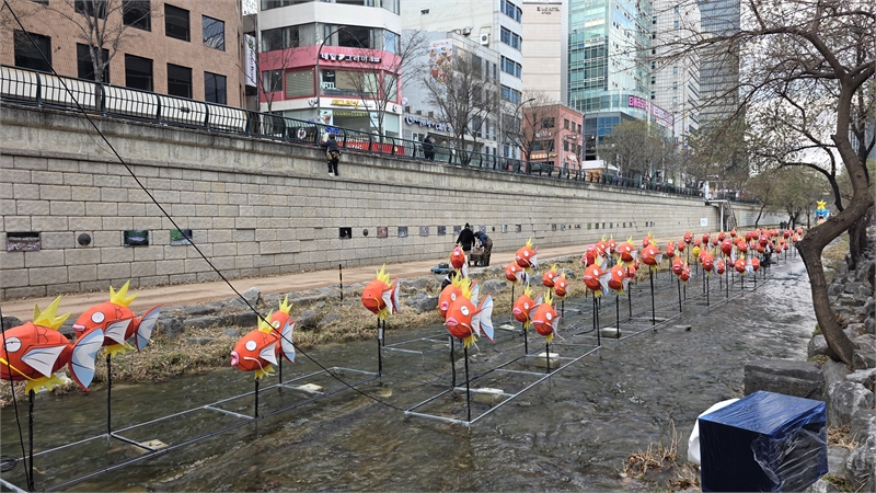 이어 청계천으로 향했다. 찬 기운이 돌았지만 바람은 불지 않았다.
