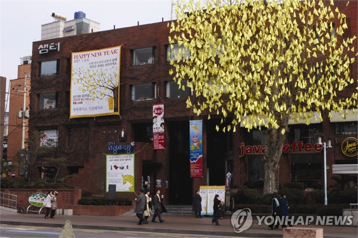 2007년 1월 샘터 앞마당에 걸린 2007장의 노란손수건 [샘터사 제공]