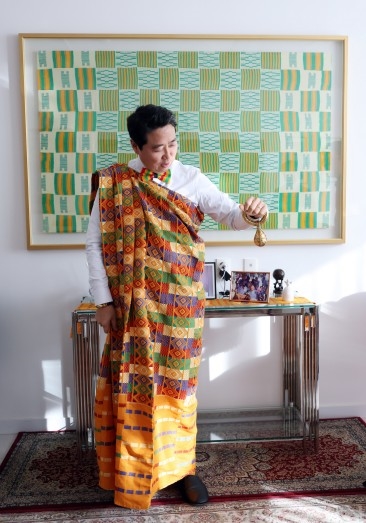 가나 전통 의상 입은 최고조 주한 가나대사 (서울=연합뉴스) 이지은 기자 = 최고조 주한 가나대사가 지난 12일 서울 용산구 주한 가나대사관저에서 진행한 연합뉴스와 인터뷰에서 가나 전통 의상을 입고 있다. 2025.12.13 jieunlee@yna.co.kr (끝)