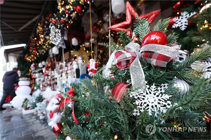 미리 만나는 크리스마스 (서울=연합뉴스) 진연수 기자 = 5일 서울 중구 남대문시장에 크리스마스 장식 용품들이 진열돼 있다. 2025.12.5 jin90@yna.co.kr
