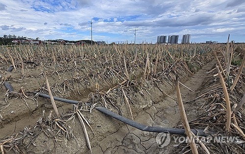 최악 가뭄에 농업용수 공급이 중단된 지난 9월 1일 강원 강릉시 한 대파밭에 심어진 파가 말라가고 있다. [연합뉴스 자료사진]