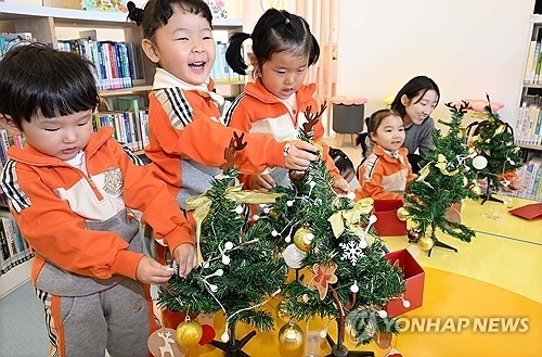 미니 크리스마스트리 만들어요. (부산=연합뉴스) 강선배 기자 = 16일 부산 북구 '아이누리 작은도서관'에서 열린 크리스마스 체험행사에서 어린이들이 미니 크리스마스트리를 만들고 있다. 31일까지 계속되는 이번 행사는 '소원 카드 만들기'와 '미니 크리스마스트리 제작' 등 2종의 프로그램으로 구성됐다. 2025.12.16