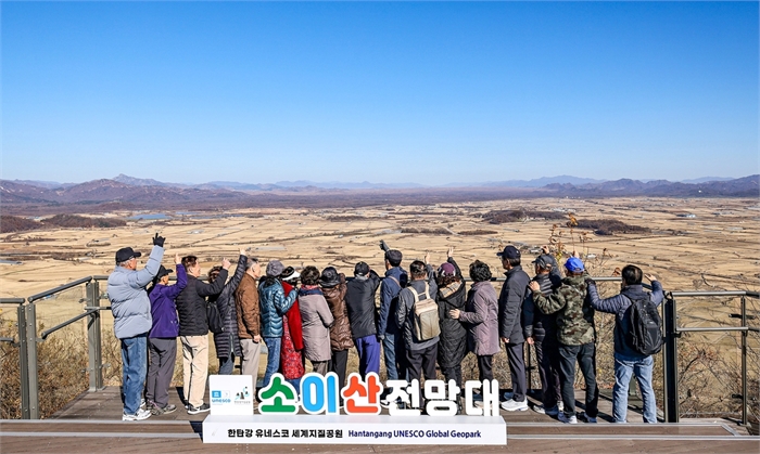 발밑으로 비옥한 농토가 시원스레 펼쳐지고 북녘땅이 지척인 양 뚜렷하게 조망되는 소이산에는 방문객이 많았다.