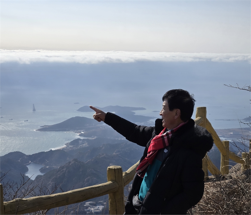 눈오는날, 중국 청도 로산(1,033m) 정상까지 등산화아닌 구두신고 올라간 필자