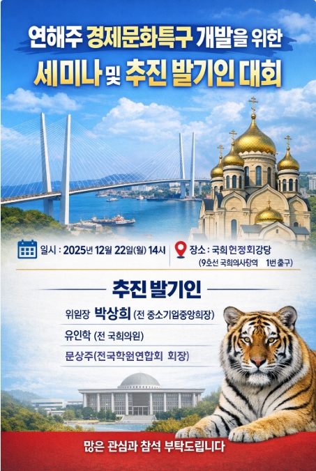 **「연해주 경제문화특구 개발 세미나 및 추진 발기인 대회」**를 아래와 같이 개최합니다.