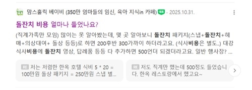 돌잔치 비용을 묻는 네이버 카페 글 [네이버 이용 화면 캡처. 재판매 및 DB 금지]