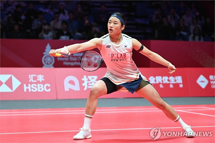 (항저우=연합뉴스) 오명언 기자 = 올 시즌 마지막 대회에서 처음으로 원피스 형태 유니폼을 입고 파격 변신한 안세영이 새 날개를 달고 훨훨 날았다.