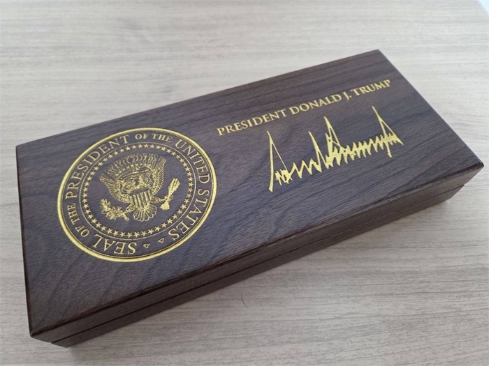 강 실장이 공개한 사진을 보면, 황금열쇠는 백악관의 전경과 트럼프 대통령의 서명이 금색으로 새겨진 나무 케이스에 들어 있다.