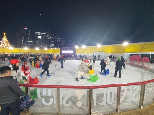 비슷한 시각 서울광장 스케이트장의 빙판은 알록달록한 옷을 입고 헬멧을 쓴 시민들로 채워졌다. 한편에 마련된 아이용 스케이트장에도 사람이 몰렸다.