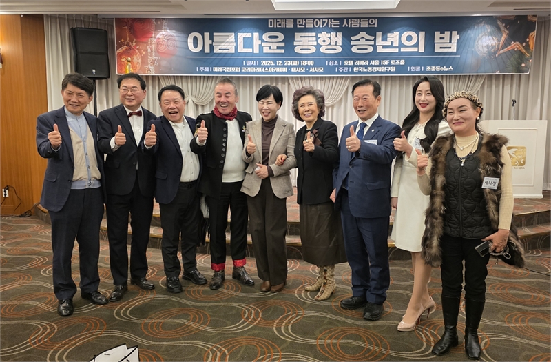 2025년 12월 23일 오후 5시 30분, ‘미래를 만들어가는 사람들의 아름다운 동행을 위한 송년의 밤’이 각계 리더 100여 명이 참석한 가운데 성황리에 개최됐다. 이날 행사는 지난 시간을 돌아보고 새로운 도약을 다짐하는 의미 있는 연말의 장으로, 깊은 울림과 감동을 남겼다.