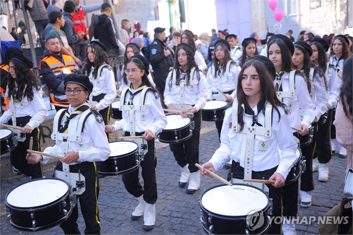 (UPI=연합뉴스) 24일 요르단강 서안 지구 베들레헴에서 크리스마스 퍼레이드가 진행되고 있다.