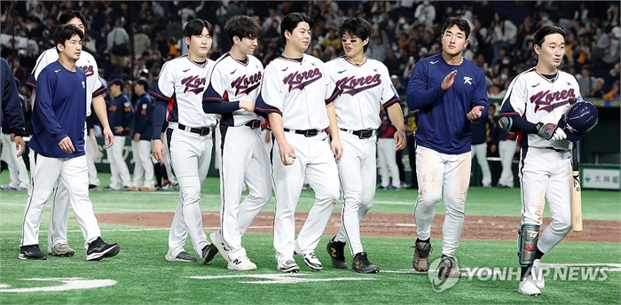 한일 2차전 무승부…희망 본 류지현호 (도쿄=연합뉴스) 이동해 기자 = 16일 일본 도쿄돔에서 열린 2025 K베이스볼 시리즈 대한민국과 일본의 평가전. 경기 종료 후 대표팀 선수들이 경기장을 빠져나가고 있다. 이날 경기는 7-7 무승부를 기록했다. 2025.11.16 eastsea@yna.co.kr