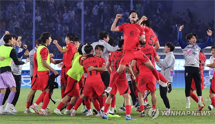 한국 선수들이 2대1 승리 후 기뻐하고 있다. 2023.10.8 ondol@yna.co.kr