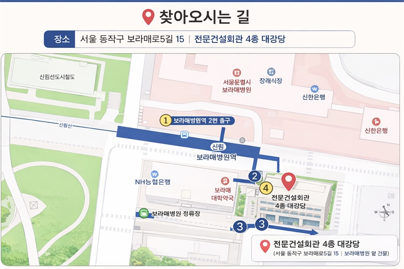 장소: 서울 동작구 보라매로5길 15 전문건설회관 4층 대강당