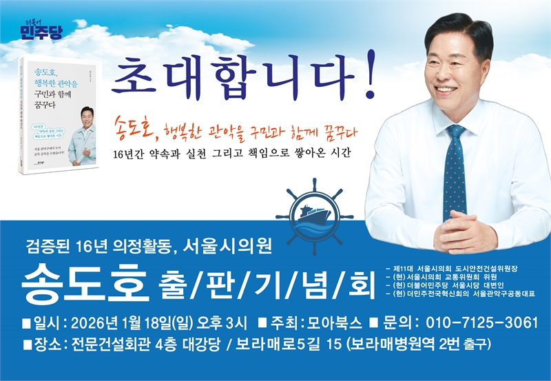관악 전문가, 송도호 시의원이 새로운 관악의 해를 맞아 출판기념회를 엽니다.