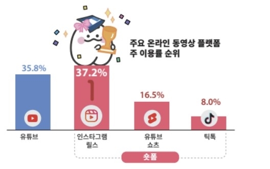 보고서는 "온라인 동영상 플랫폼의 단순 이용 경험률은 유튜브가 가장 높았지만 자주 이용하는 플랫폼에서는 인스타그램 릴스가 유튜브를 추월했다"며 "청소년의 온라인 동영상 소비 중심축이 롱폼에서 숏폼으로 이동한 것으로 보인다"고 말했다.