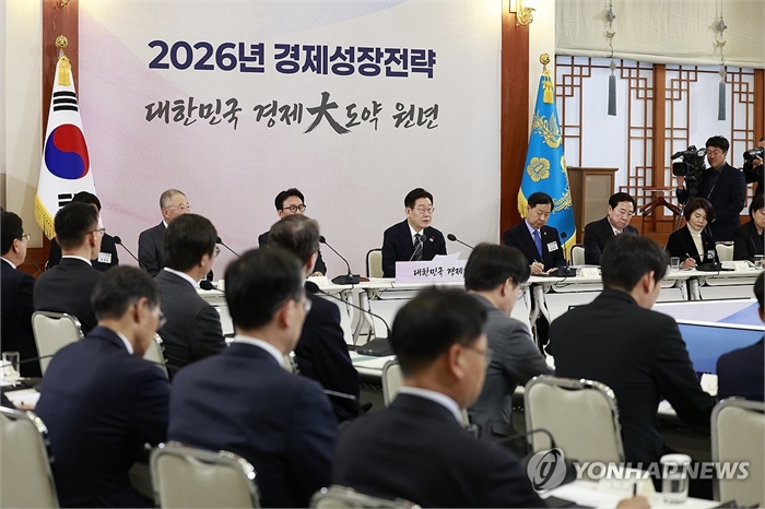 이재명 대통령, 경제성장전략 국민보고회 발언 (서울=연합뉴스) 한상균 기자 = 이재명 대통령이 9일 청와대에서 열린 경제성장전략 국민보고회에서 발언하고 있다. 2026.1.9 [청와대통신사진기자단] xyz@yna.co.kr