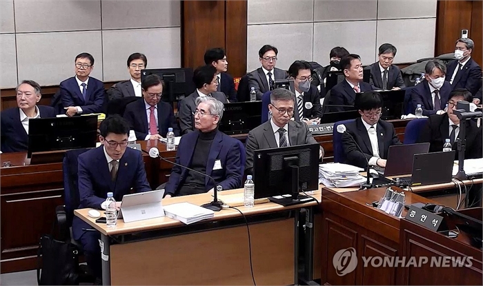 '내란 우두머리' 윤석열 결심공판 출석 (서울=연합뉴스) 12·3 비상계엄 관련 내란 우두머리 혐의로 기소된 윤석열 전 대통령과 내란 중요임무 종사 혐의를 받는 김용현 전 국방부 장관 등 내란 관련자들이 9일 서초구 서울중앙지방법원 417호 형사대법정에서 열린 윤 전 대통령의 내란 우두머리 혐의, 김 전 장관을 비롯한 군·경 수뇌부 7명의 내란 중요임무 종사 혐의 등 사건의 결심 공판에 출석해 있다. 2026.1.9 [서울중앙지법 제공. 재판매 및 DB 금지] photo@yna.co.kr